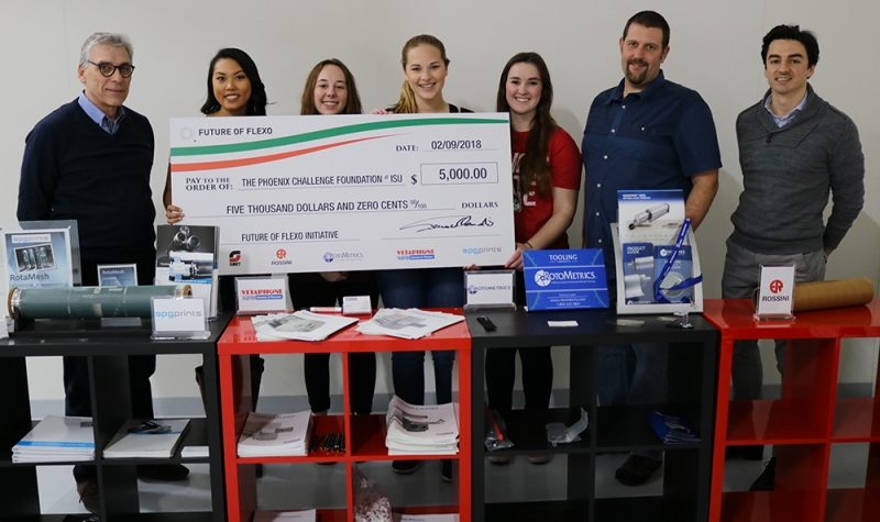 ELK GROVE VILLAGE, IL—OMET Americas and a consortium of flexographic printers and suppliers—Rossini, RotoMetrics, SPGprints and Vetaphone—recently made a donation of $5,000 to the Illinois State University Department of Technology. The donation is meant to increase the growth of the industry’s future workforce and technology, as well as support this group of students as they compete in the Phoenix Challenge.