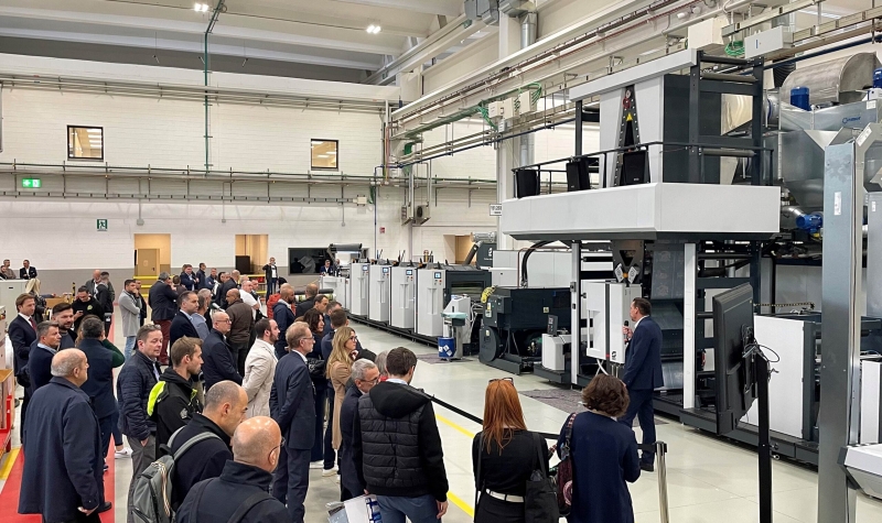 After the presentations, attendees had the opportunity to visit OMET’s production facilities, where they witnessed a live demonstration of the Varyflex V4, a printing machine with combined offset/flexo technology dedicated to flexible packaging printing. The machine was presented with an 850 mm web width but is also available in widths of 670 mm and 1080 mm. It showcased its versatility by handling a wide range of materials, such as unsupported films and folding carton.